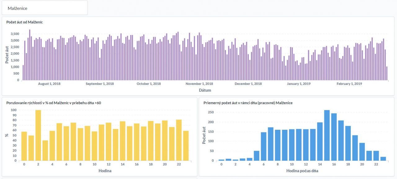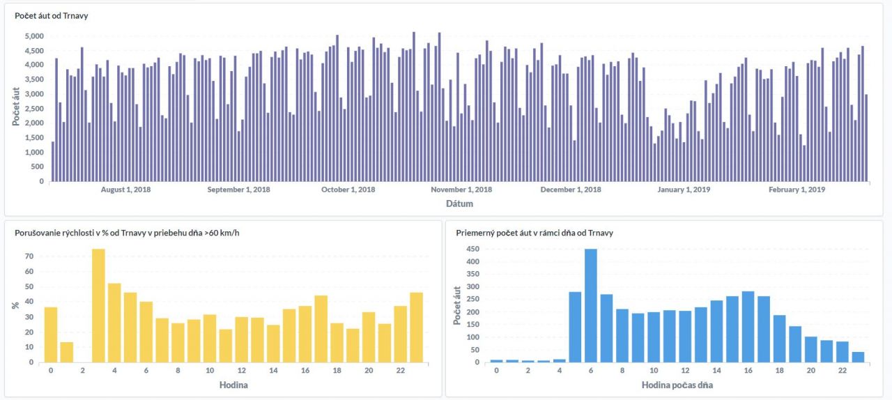 Asi najviac je zaujímavý merač na vstupe do obce od Trnavy. Podľa získaných dát cez pracovný týždeň vojde v priemere do našej obce okolo 4000 áut/deň, cez víkend je ich o polovicu menej. Najviac áut vchádza do obce cez pracovné dni medzi 6. a 7. hodinou rannou a to v priemere 450. Spolu medzi 5. a 8. hodinou ráno vojde do obce cca 1000 áut. 30% vodičov vchádza do obce rýchlosťou vyššou ako 60 km/h.