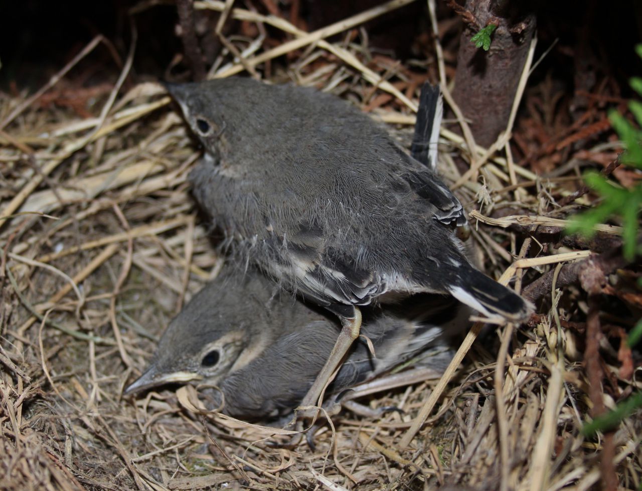 Nám sa na balkóne zahniezdil trasochvost. Urobil si hniezdo v kvetníku s tujou. Dozvedela som sa o ňom len náhodou. Na balkóne bolo vždy k večeru plno stebiel trávy, ktoré tam nemali odkiaľ byť. Tak som začala pátrať a našla som hniezdo s troma škvrnitými vajíčkami. A tak začalo naša spolunažívanie a tolerovanie sa. Po vyliahnutí bolo v ňom vidno len sivé páperie. Trasochvost usilovne lieta a kŕmi mladé. S hmyzom v zobáčiku prebehne po balkóne. Nazrie do dverí a vletí pod tuju, odkiaľ sa ozve zborové pískanie mláďat, ktoré pekne rastú a čochvíľa ostane hniezdo opustené.