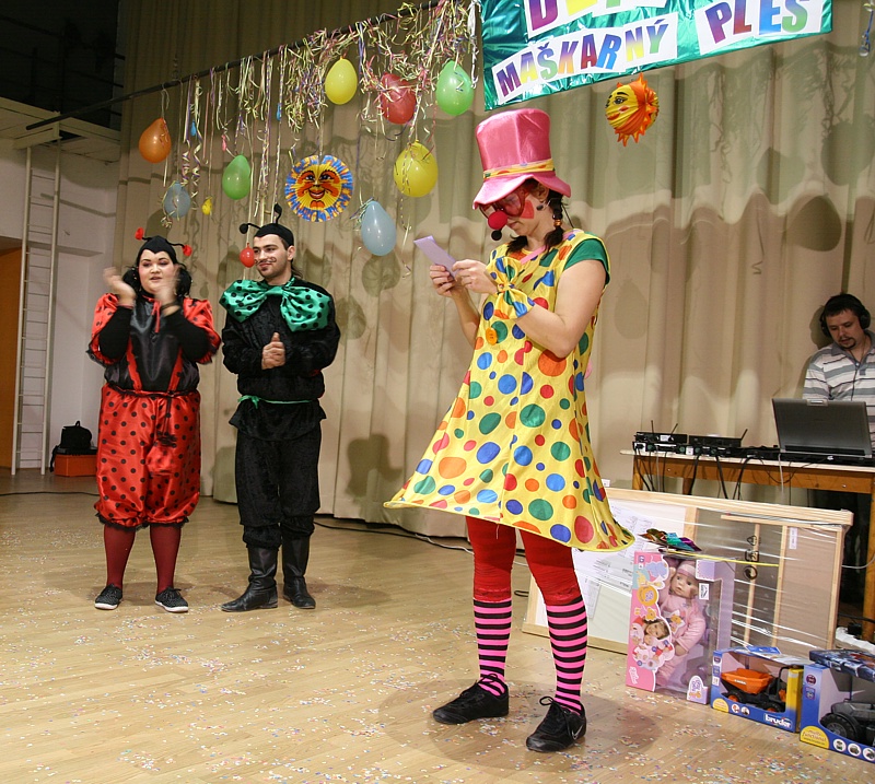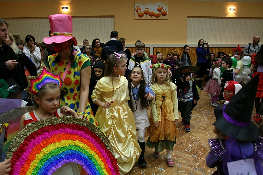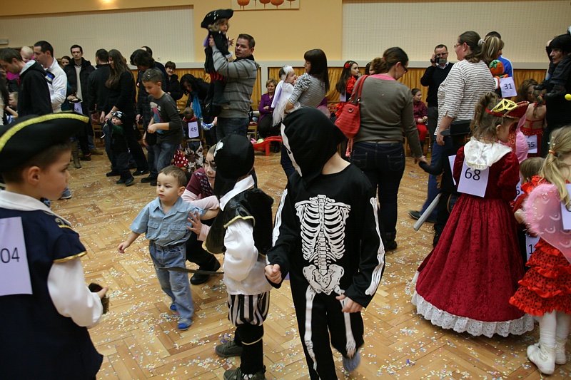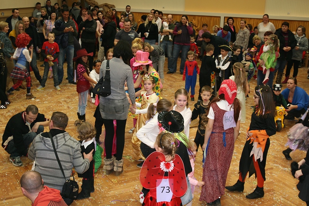 Detský maškarný ples sa konal v sobotu 9. februára 2013 v Spoločenskom dome PD Jaslovské Bohunice. Zapísaných bolo rekordných 134 masiek. Tento rok sa „roztrhlo vrece s bodkami“. Červených lienok s čiernymi bodkami bolo neúrekom. Ale „poletovalo“ dosť aj pestrofarebných víl. Na ústup zatrúbili čerti – poslali len jedného zástupcu, ale bola to krásna čertica. Súťaž o najkrajšiu masku vyhrala Hanka kvetinárka. Foto: BH