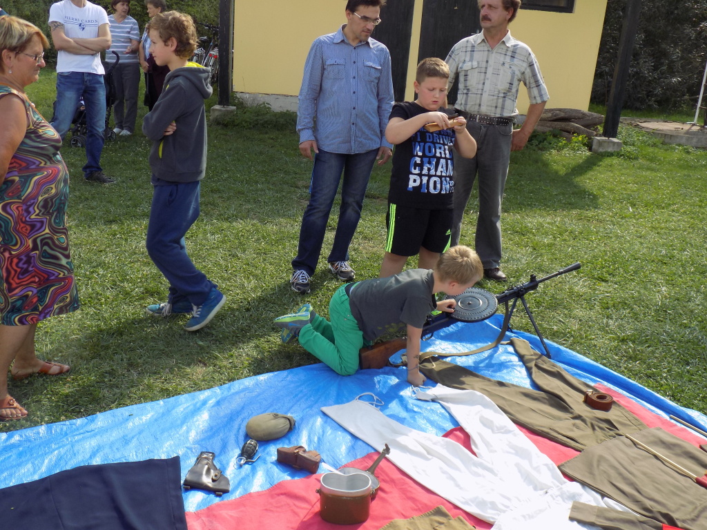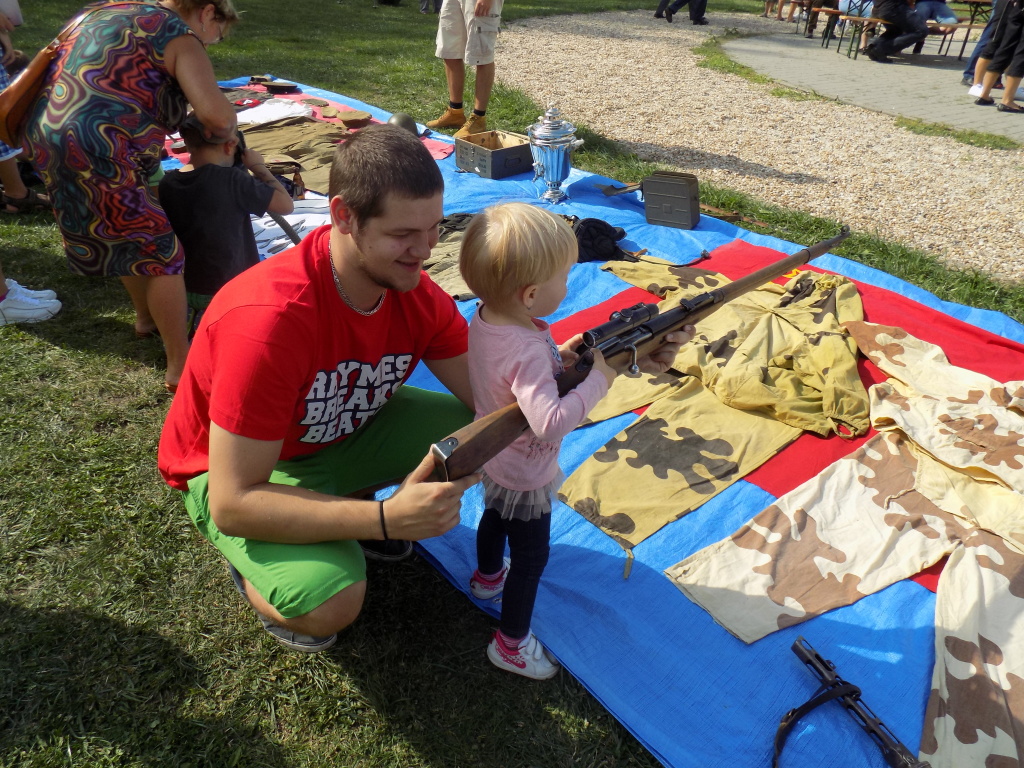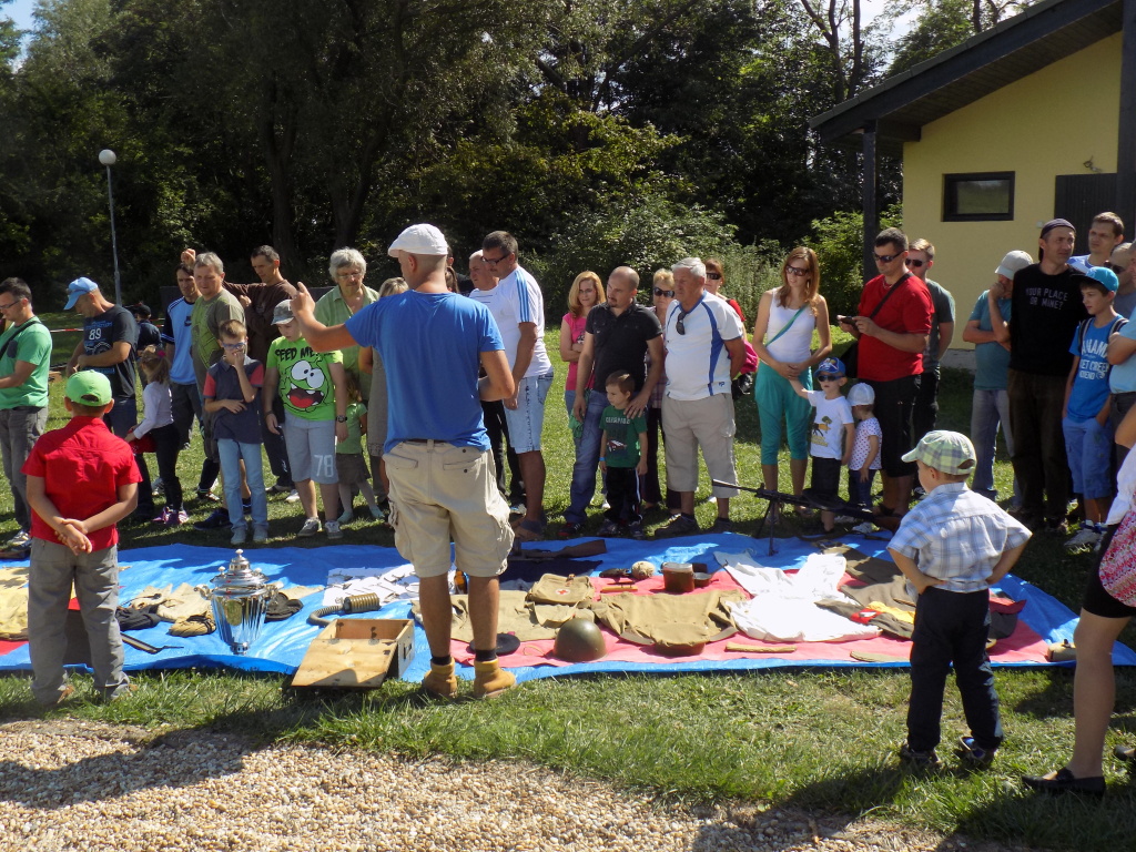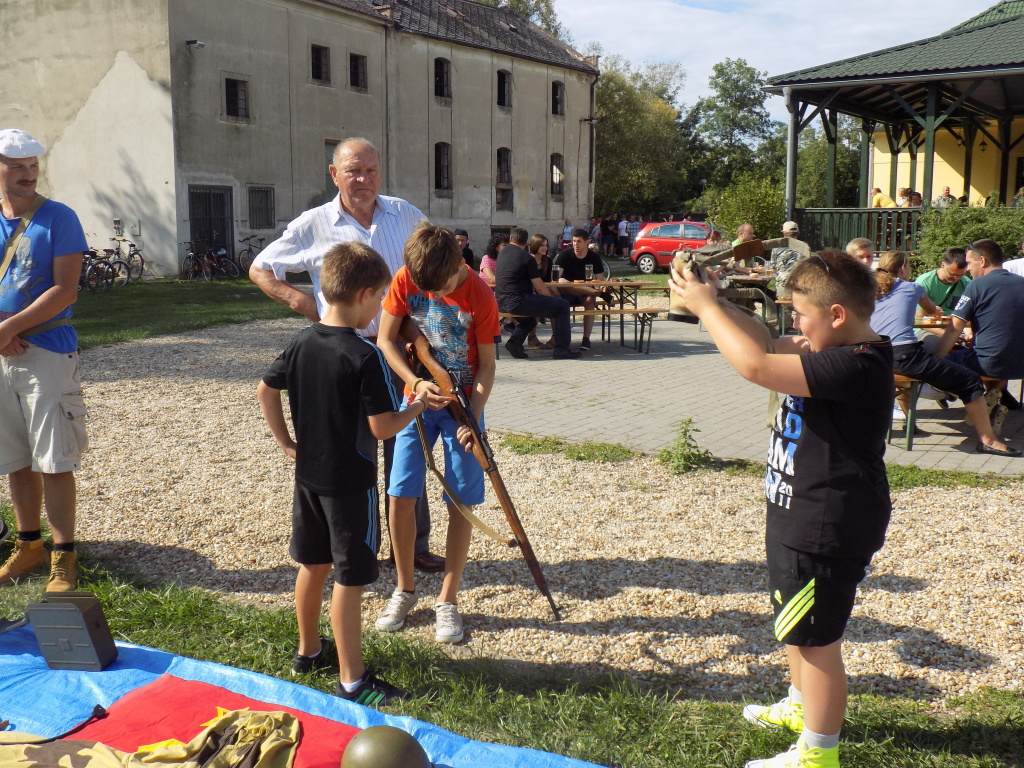 V nedeľu 17.8. patrila strelnica Na Mlyne 2. svetovej vojne. Jej históriu nám prišlo so svojou putovnou výstavou pripomenúť Múzeum na kolesách z Prešova. Akcia začala výstrelom z mínometu. Artefakty – granáty, guľomety, pušky, plynové masky, rôzne uniformy, helmy, dokonca ruský kávovar a veľa iných predmetov sme si mohli chytiť do rúk, vyskúšať, poťažkať. Chlapcov aj chlapov určite potešilo, že si môžu chytiť do rúk samopal, ktorý tak dobre poznáme z filmov o partizánoch. Mohli si tiež zastrieľať zo vzduchovej pištole aj so vzduchovky, historických zbraní. Hádzalo sa aj granátom na helmy nepriateľov. Nadšenci, ktorí prišli s Múzeom na kolesách dokázali zaujímavo a pútavo rozprávať o každej veci, ktorá bola vystavená. Nádherné počasie, ktoré vládlo a nevšednosť vystavovaných vecí prilákali Na Mlyn veľa zvedavých ľudí. Veríme, že takto strávený deň bol prínosom pre všetkých. Foto: Miroslava Remenárová a BH