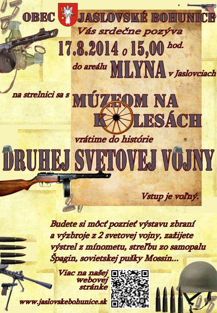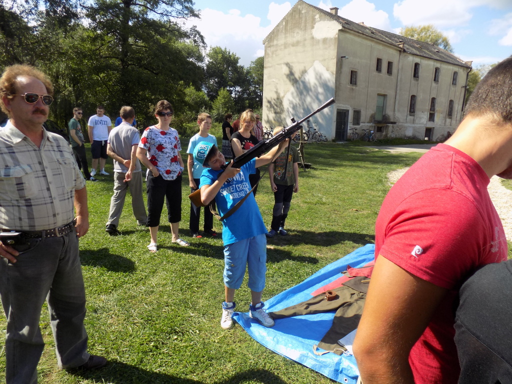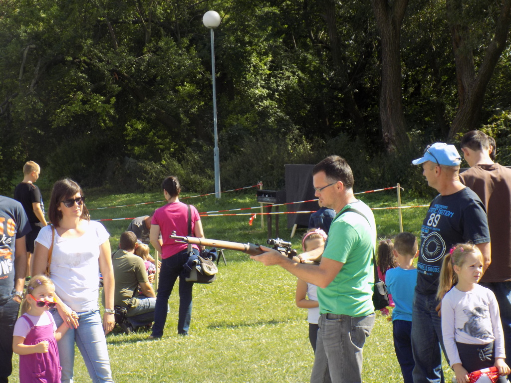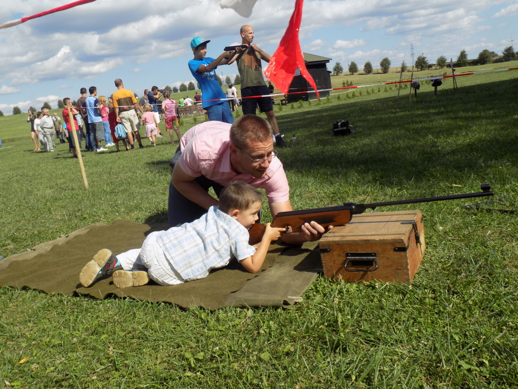 V nedeľu 17.8. patrila strelnica Na Mlyne 2. svetovej vojne. Jej históriu nám prišlo so svojou putovnou výstavou pripomenúť Múzeum na kolesách z Prešova. Akcia začala výstrelom z mínometu. Artefakty – granáty, guľomety, pušky, plynové masky, rôzne uniformy, helmy, dokonca ruský kávovar a veľa iných predmetov sme si mohli chytiť do rúk, vyskúšať, poťažkať. Chlapcov aj chlapov určite potešilo, že si môžu chytiť do rúk samopal, ktorý tak dobre poznáme z filmov o partizánoch. Mohli si tiež zastrieľať zo vzduchovej pištole aj so vzduchovky, historických zbraní. Hádzalo sa aj granátom na helmy nepriateľov. Nadšenci, ktorí prišli s Múzeom na kolesách dokázali zaujímavo a pútavo rozprávať o každej veci, ktorá bola vystavená. Nádherné počasie, ktoré vládlo a nevšednosť vystavovaných vecí prilákali Na Mlyn veľa zvedavých ľudí. Veríme, že takto strávený deň bol prínosom pre všetkých. Foto: Miroslava Remenárová a BH