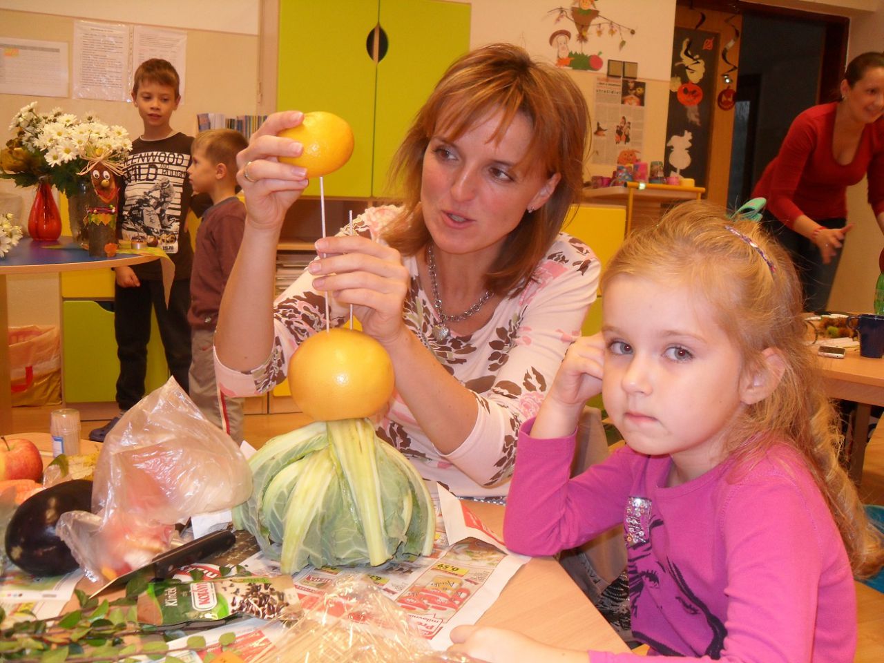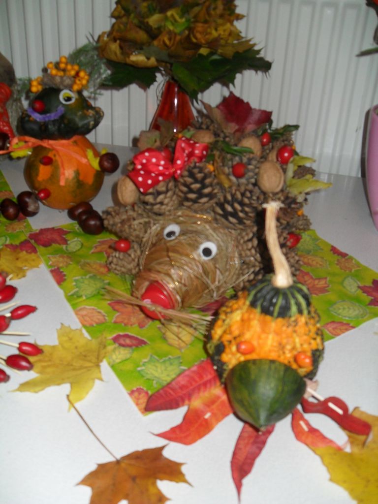 Jeseň – to je krásne vyfarbené lístie stromov, ale aj plody z našich záhrad. Keď k tomu doplníte to, čo ponúka naša príroda, dajú sa z toho robiť krásne veci. Ak neveríte, pozrite si, čo dokázali spraviť deti z materskej školy za pomoci svojich rodičov a pani učiteliek na tvorivom jesennom stretnutí. Foto: Zuzana Kureková