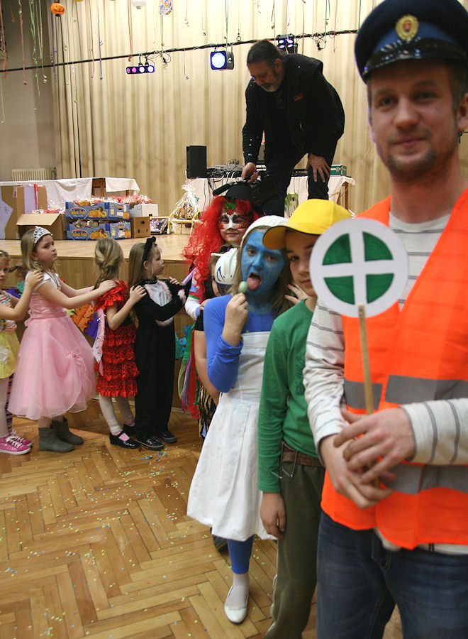 Detský maškarný ples – Výpravca by bol - len vláčik nikde. Tak si ho maska spravili.