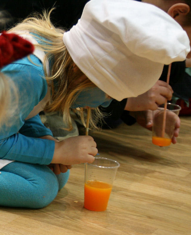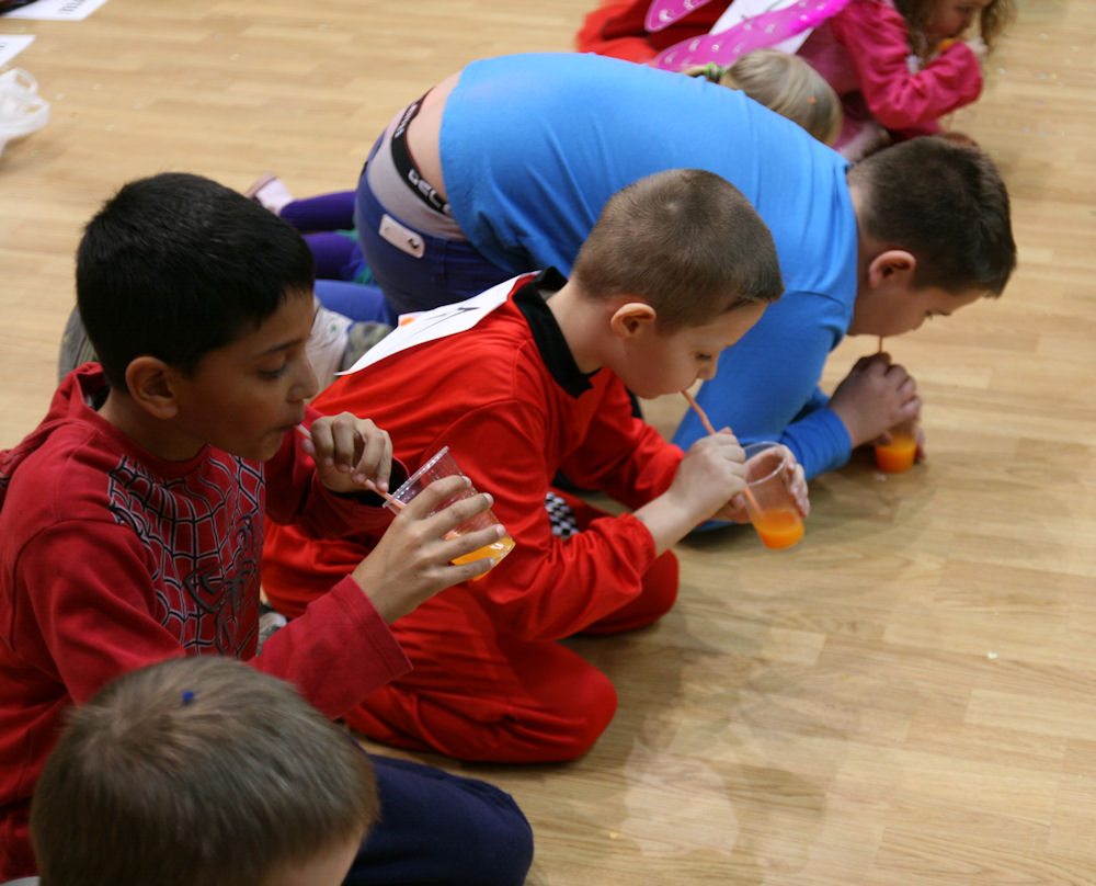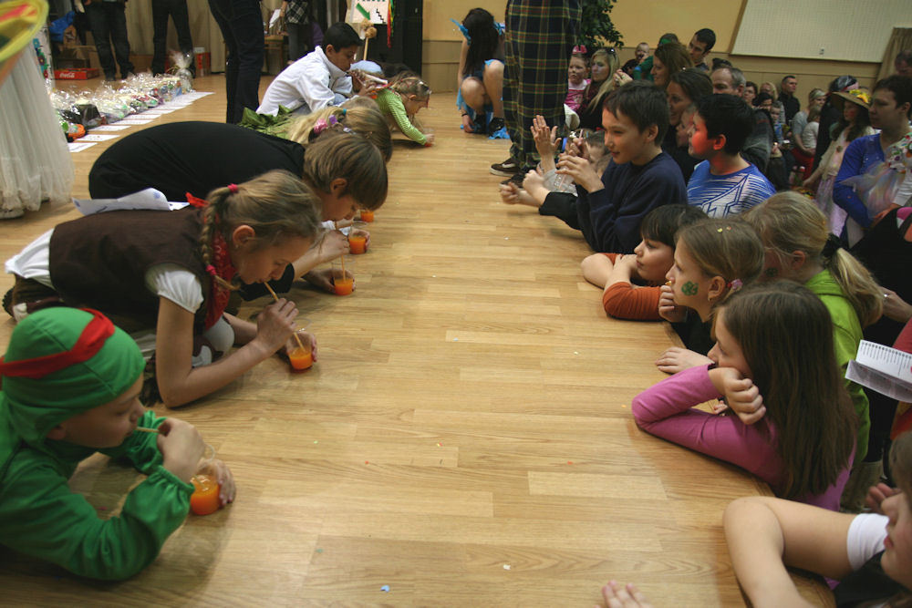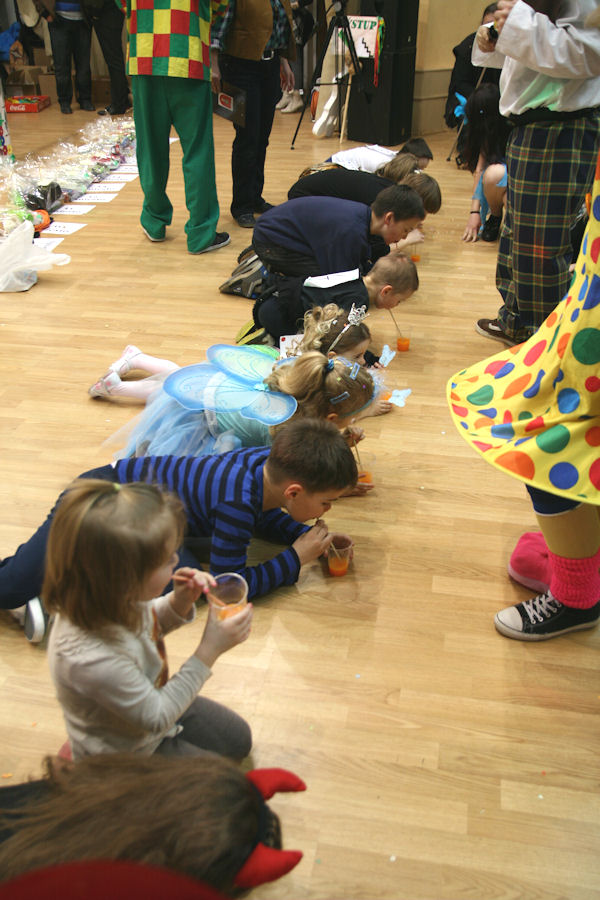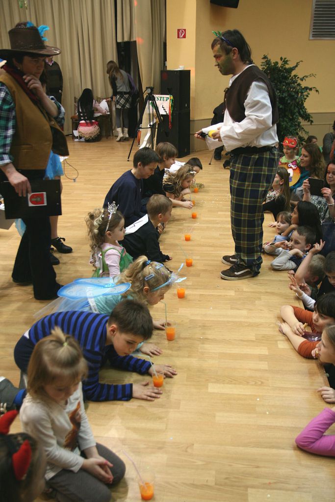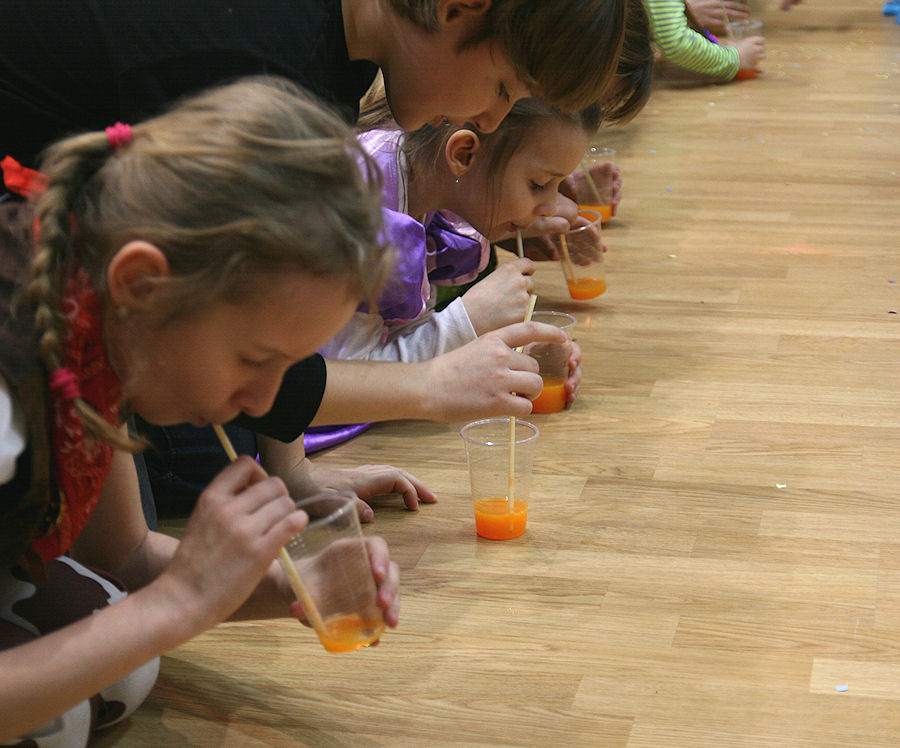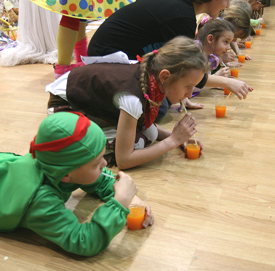 Detský maškarný ples – Súťaž v pití malinovky.