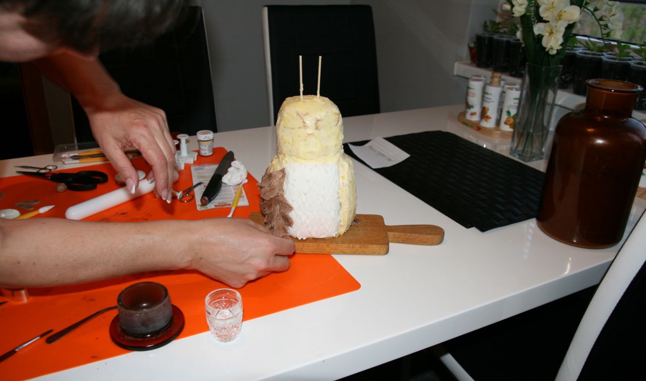 Torty Jany Matovičovej, obyvateľky našej obce. Rozhovor s ňou nájdete v článku Spod rúk jej vychádza dokonalá krása - a ešte aj chutí . Článok je uverejnený aj v Blavských novinách č. 2/2014. Foto z pečenia torty – sovy : BH Fotky tort pre náš web poskytla Jana Matovičová.