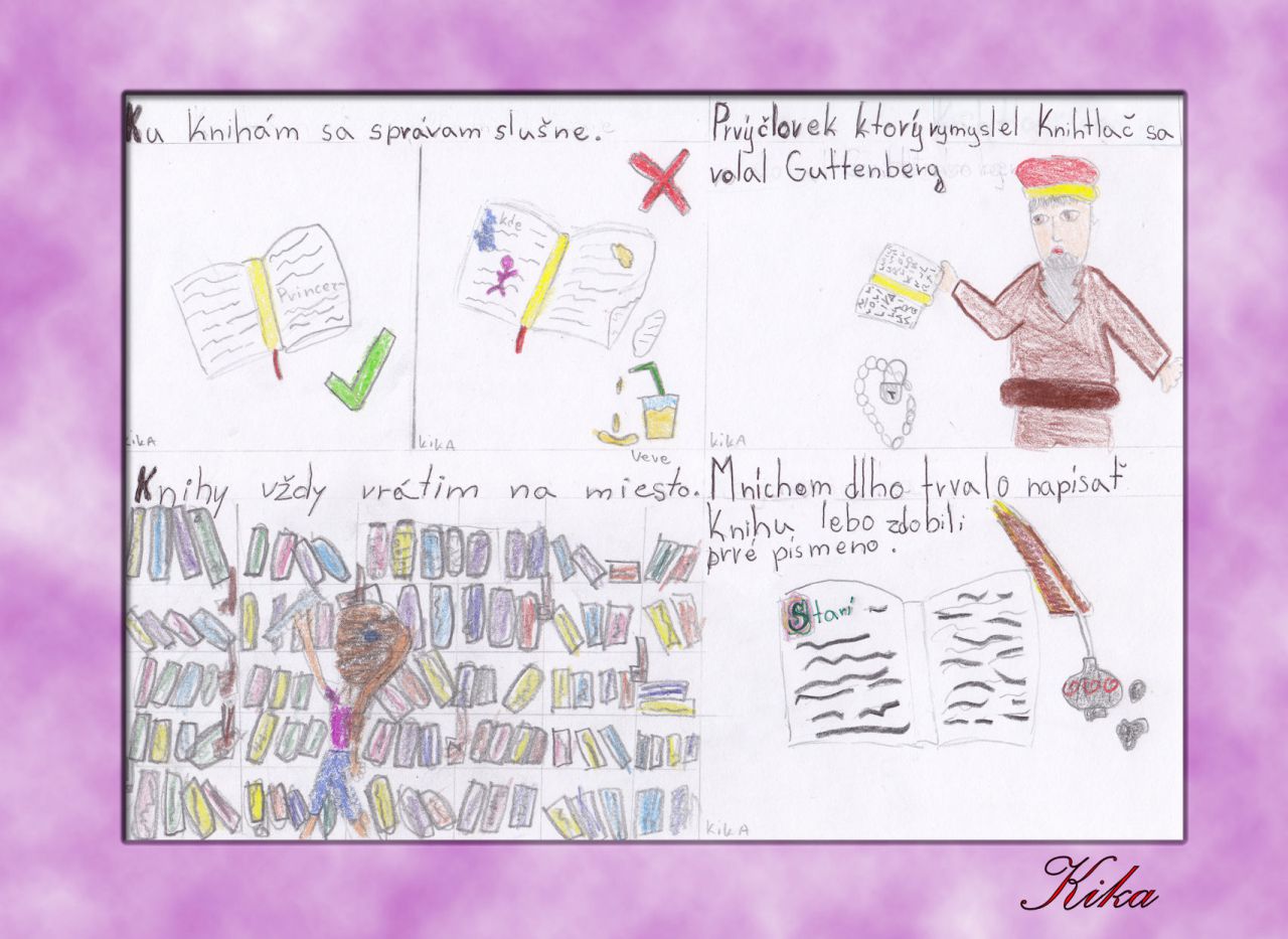 Ku knihám sa správam slušne. Knihy vždy vrátim na miesto. Prvý človek ktorý vymyslel kníhtlač sa volal Guttenberg.
