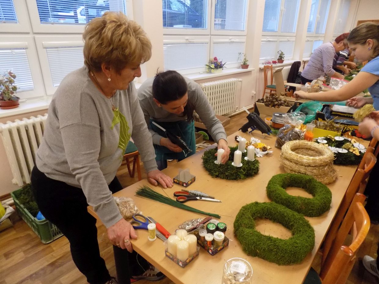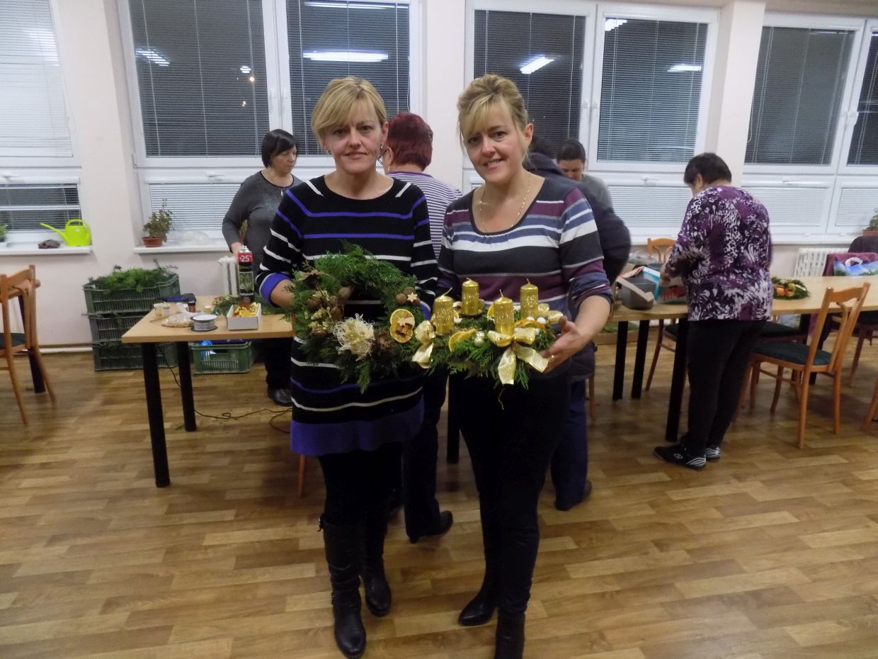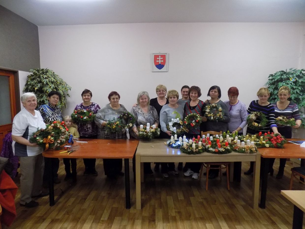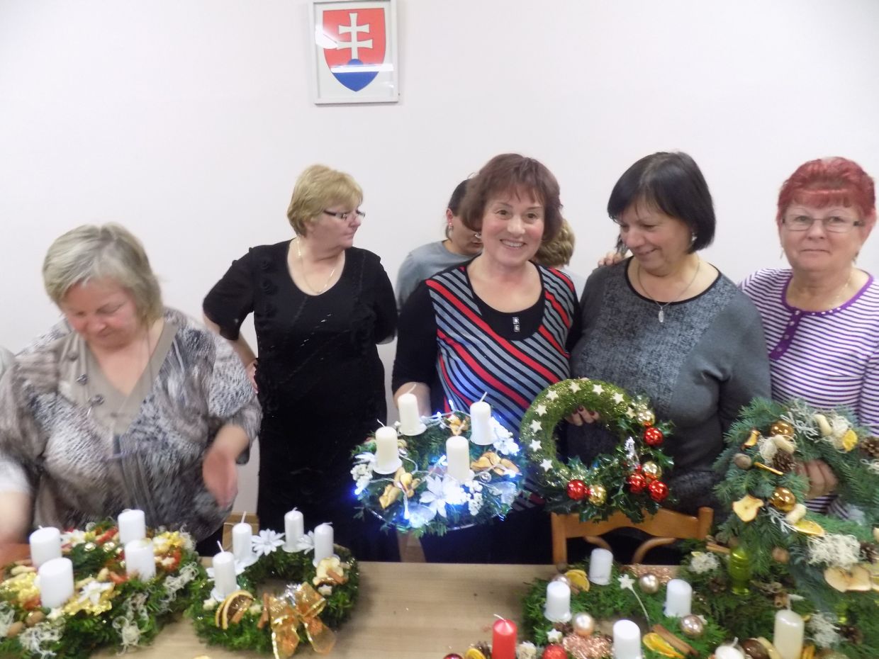 Posledný piatok v novembri patril v spoločenskej miestnosti pod poštou šikovným rukám. Čo len trošku zručnejšie ženy, ktoré mali záujem, si mohli vyrobiť adventný veniec. Odbornú pomoc im pritom poskytla majsterka odborného výcviku Zuzana Vozárová zo Strednej odbornej školy v Rakoviciach. Na základe jej rád výroba venca nebola vôbec zložitá. Použiť sa dajú rôzne dostupné materiály a predmety. Teraz je trendom používať prírodné materiály - slamené vence, čečinu, šišky, oriešky, škoricu, usušený pomaranč, citrón, kvety, šípky a k tomu sviečky a nejakú tú stuhu. V obchode za takýto veniec zaplatíte od 10 € hore. Tu sme si domov si odnášali nádherné adventné vence za pár eur, ktoré budú ozdobou našich vianočných príbytkov. Foto: ZM