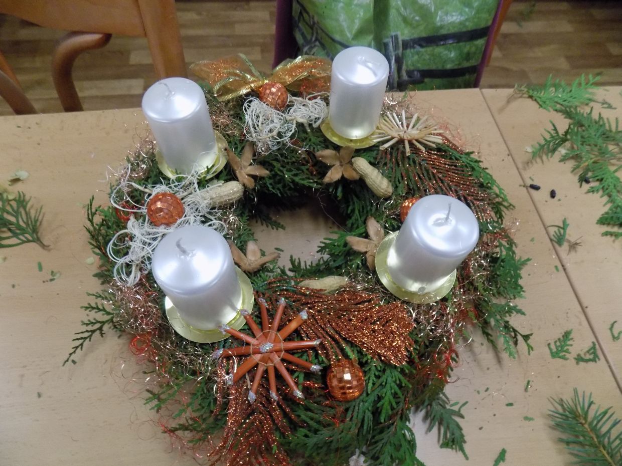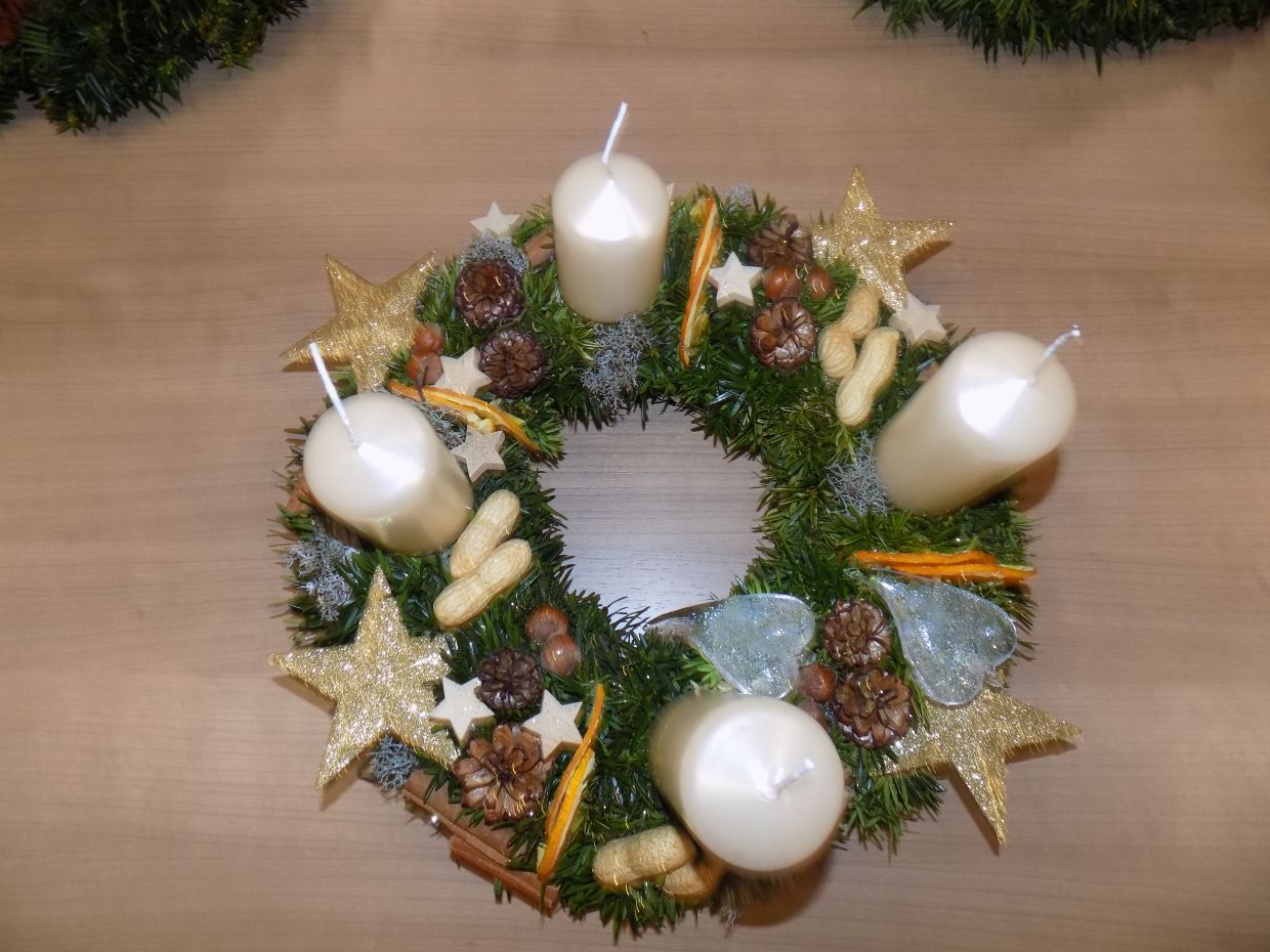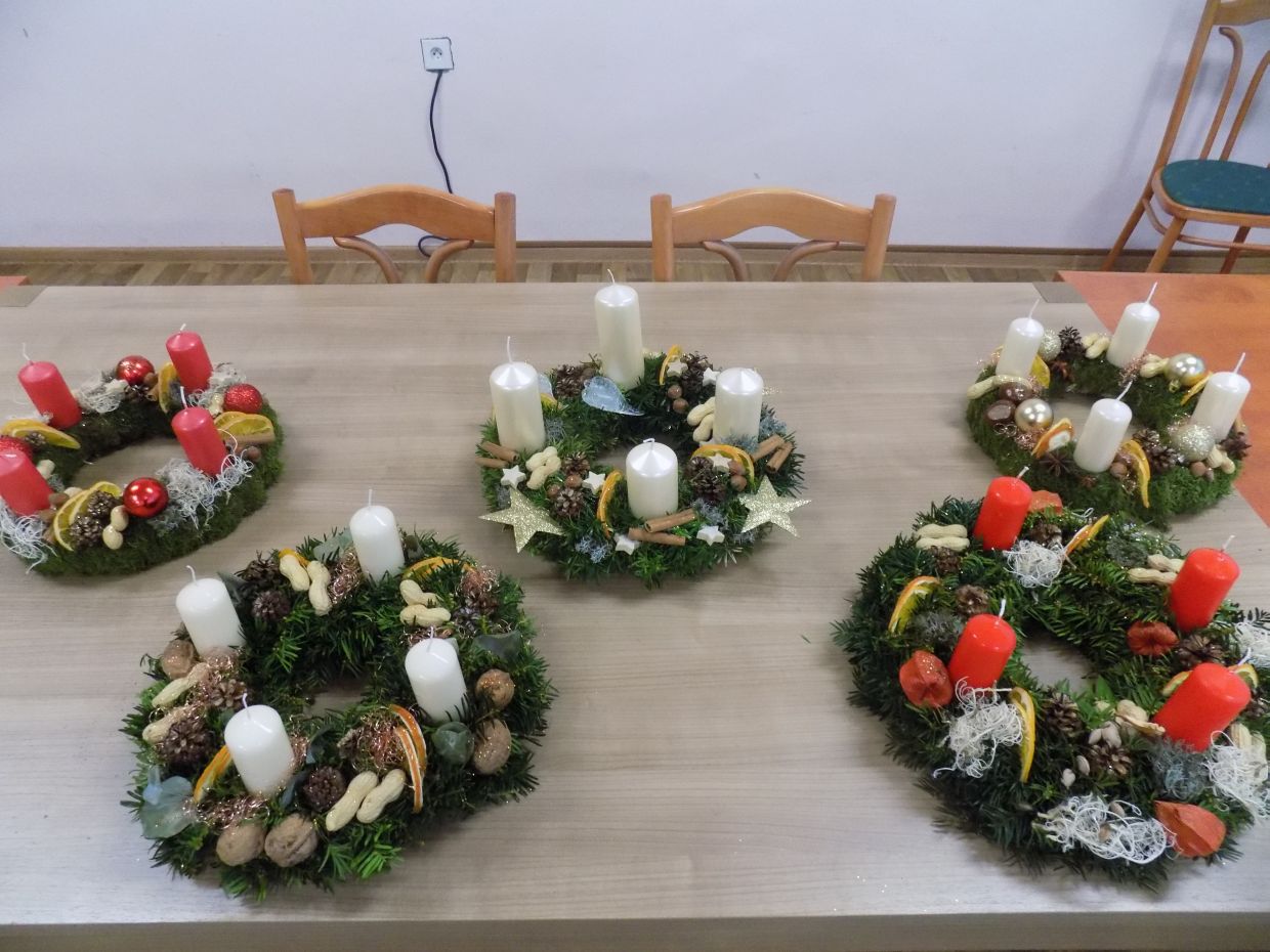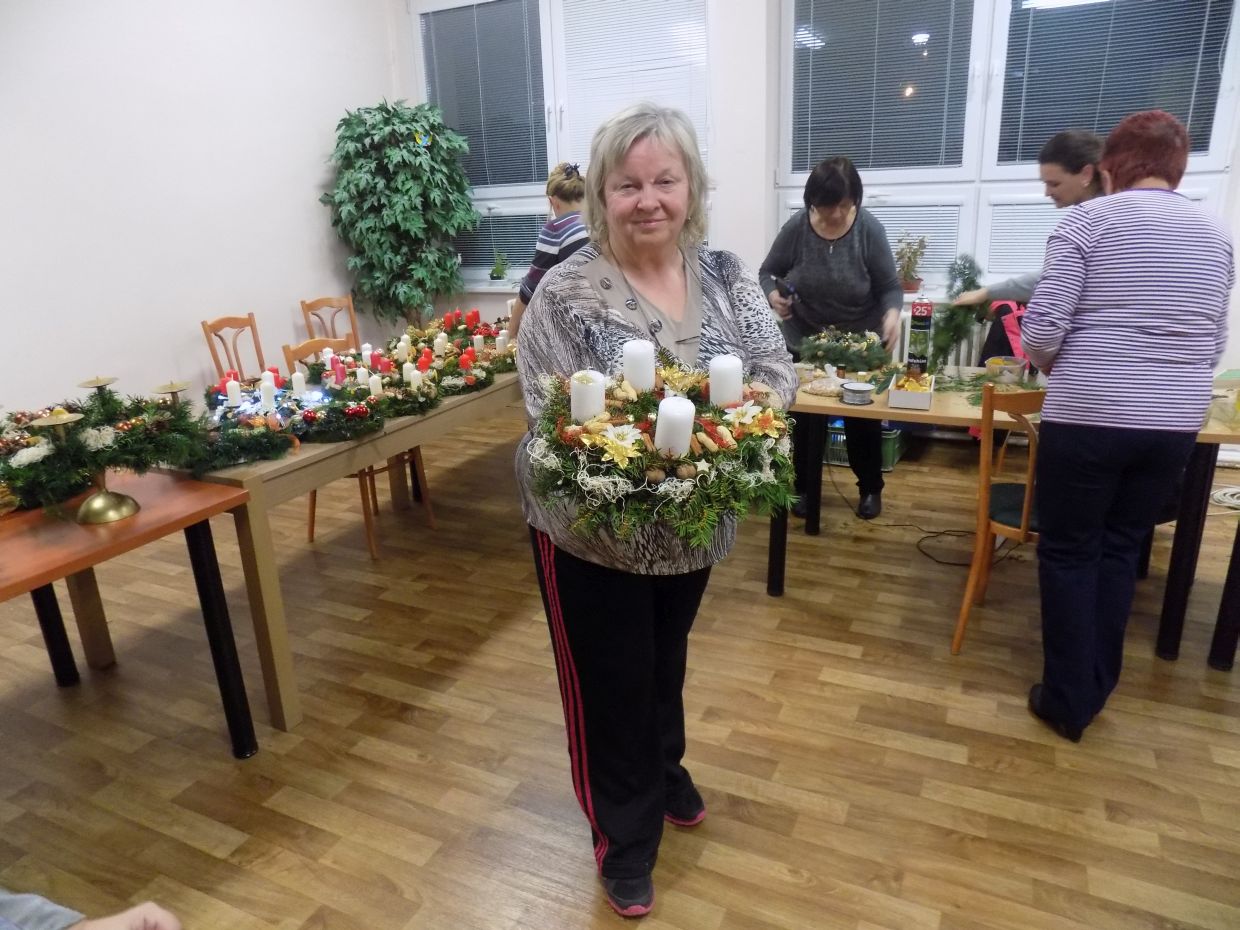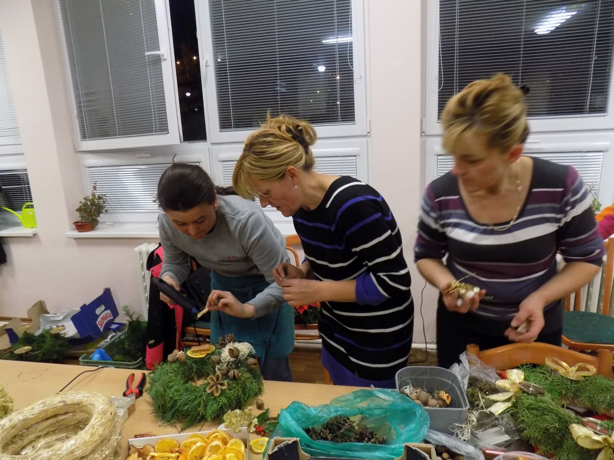 Posledný piatok v novembri patril v spoločenskej miestnosti pod poštou šikovným rukám. Čo len trošku zručnejšie ženy, ktoré mali záujem, si mohli vyrobiť adventný veniec. Odbornú pomoc im pritom poskytla majsterka odborného výcviku Zuzana Vozárová zo Strednej odbornej školy v Rakoviciach. Na základe jej rád výroba venca nebola vôbec zložitá. Použiť sa dajú rôzne dostupné materiály a predmety. Teraz je trendom používať prírodné materiály - slamené vence, čečinu, šišky, oriešky, škoricu, usušený pomaranč, citrón, kvety, šípky a k tomu sviečky a nejakú tú stuhu. V obchode za takýto veniec zaplatíte od 10 € hore. Tu sme si domov si odnášali nádherné adventné vence za pár eur, ktoré budú ozdobou našich vianočných príbytkov. Foto: ZM