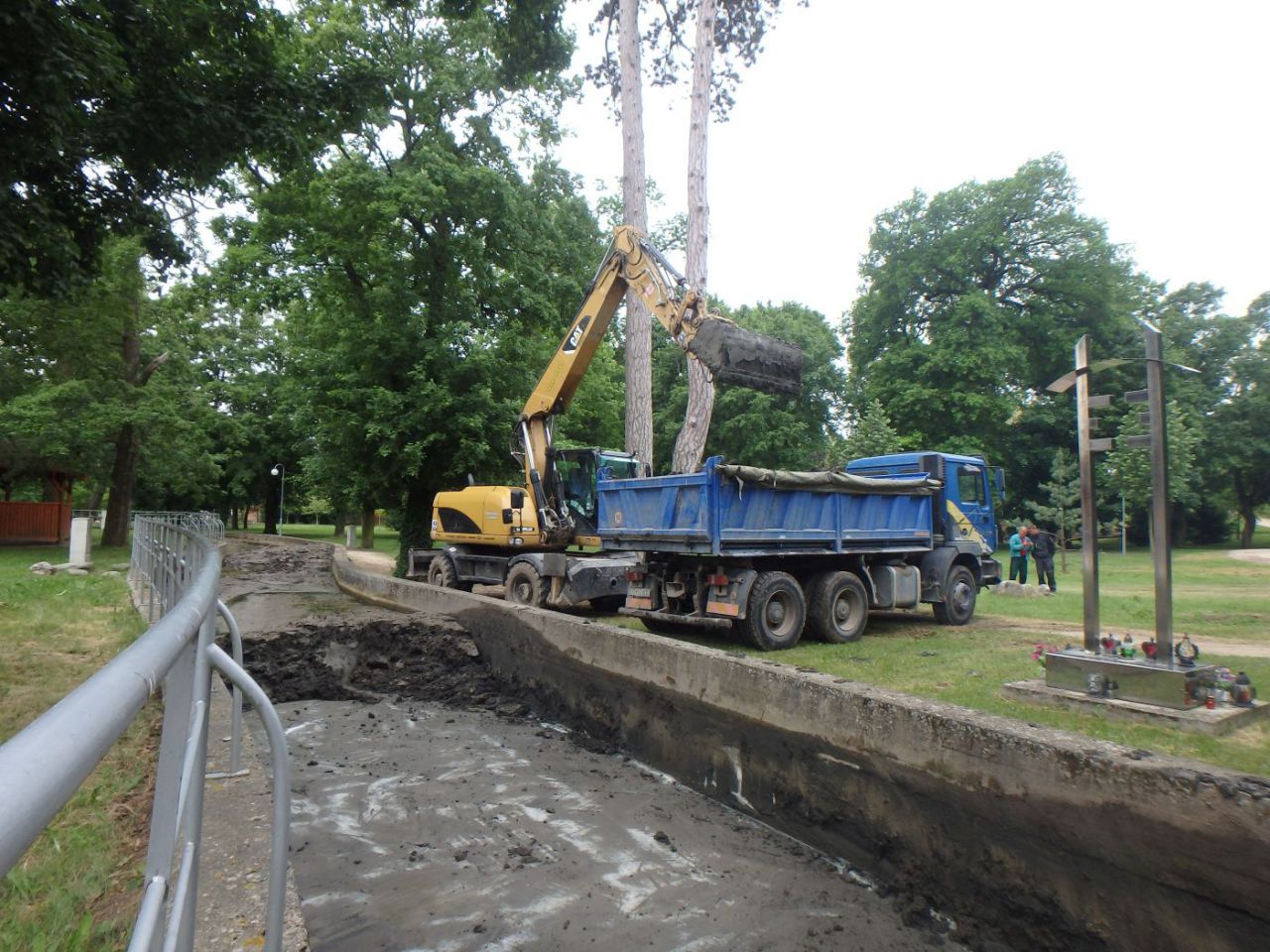 Po získaní povolenia od Správy povodia Váhu sme v máji začali s čistením meandra v parku.