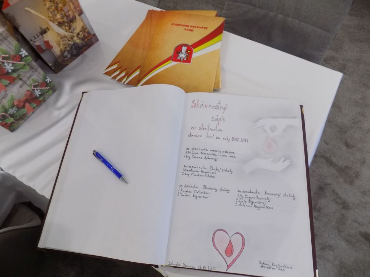 V stredu 20.12. sa na obecnom úrade stretla starostka obce s darcami krvi, ktorí sú držiteľmi niektorého z ocenenia, ktoré sa im odovzdáva za tento vysoko ľudský a hlavne nezištný počin a ktorí doposiaľ neboli ocenení obcou.