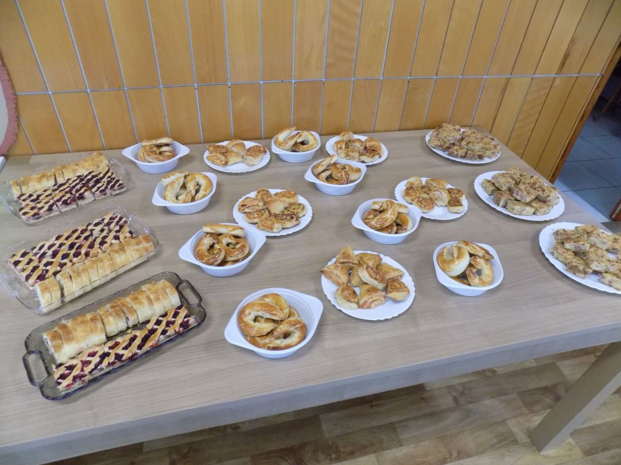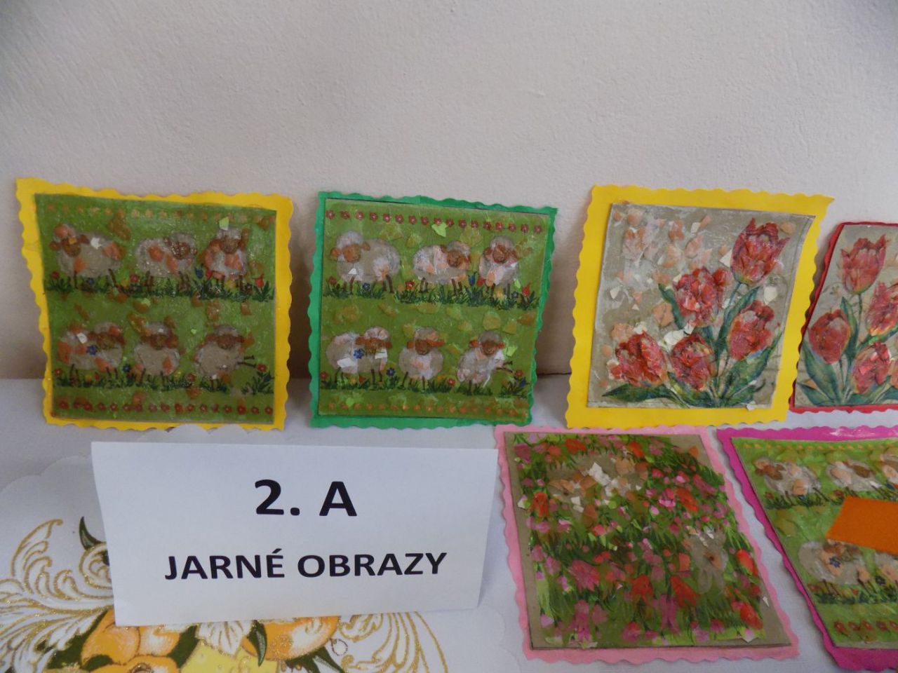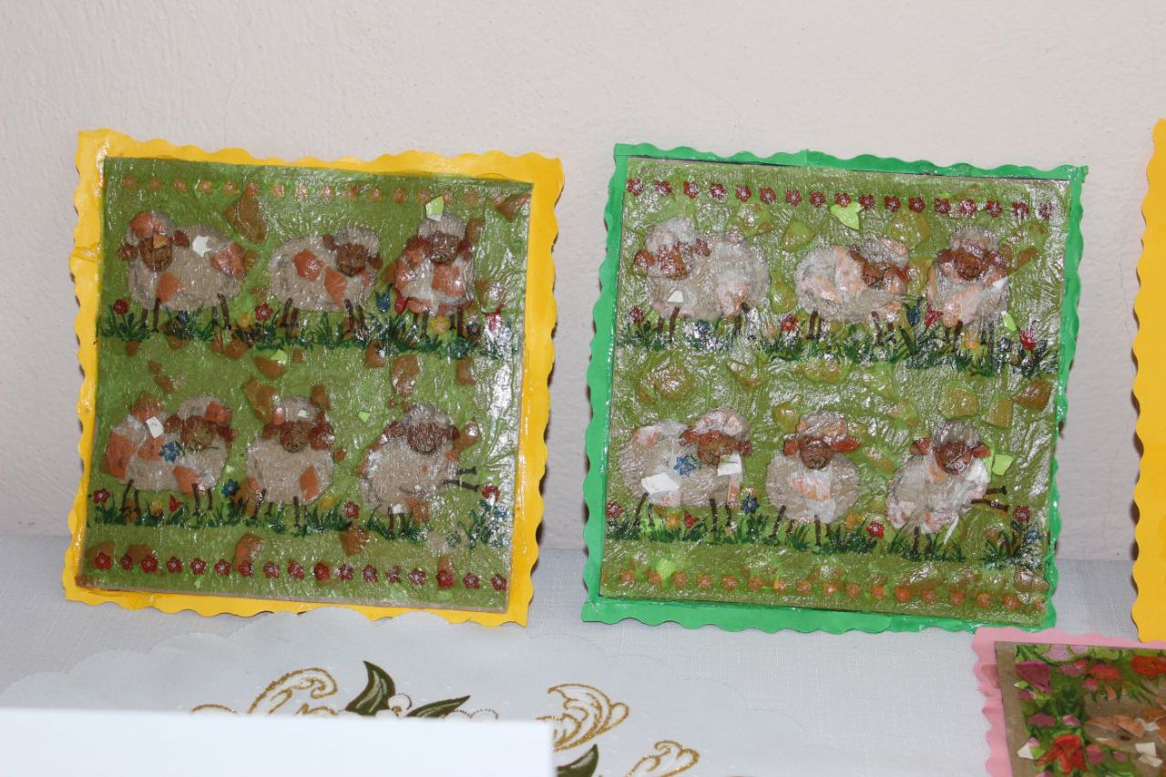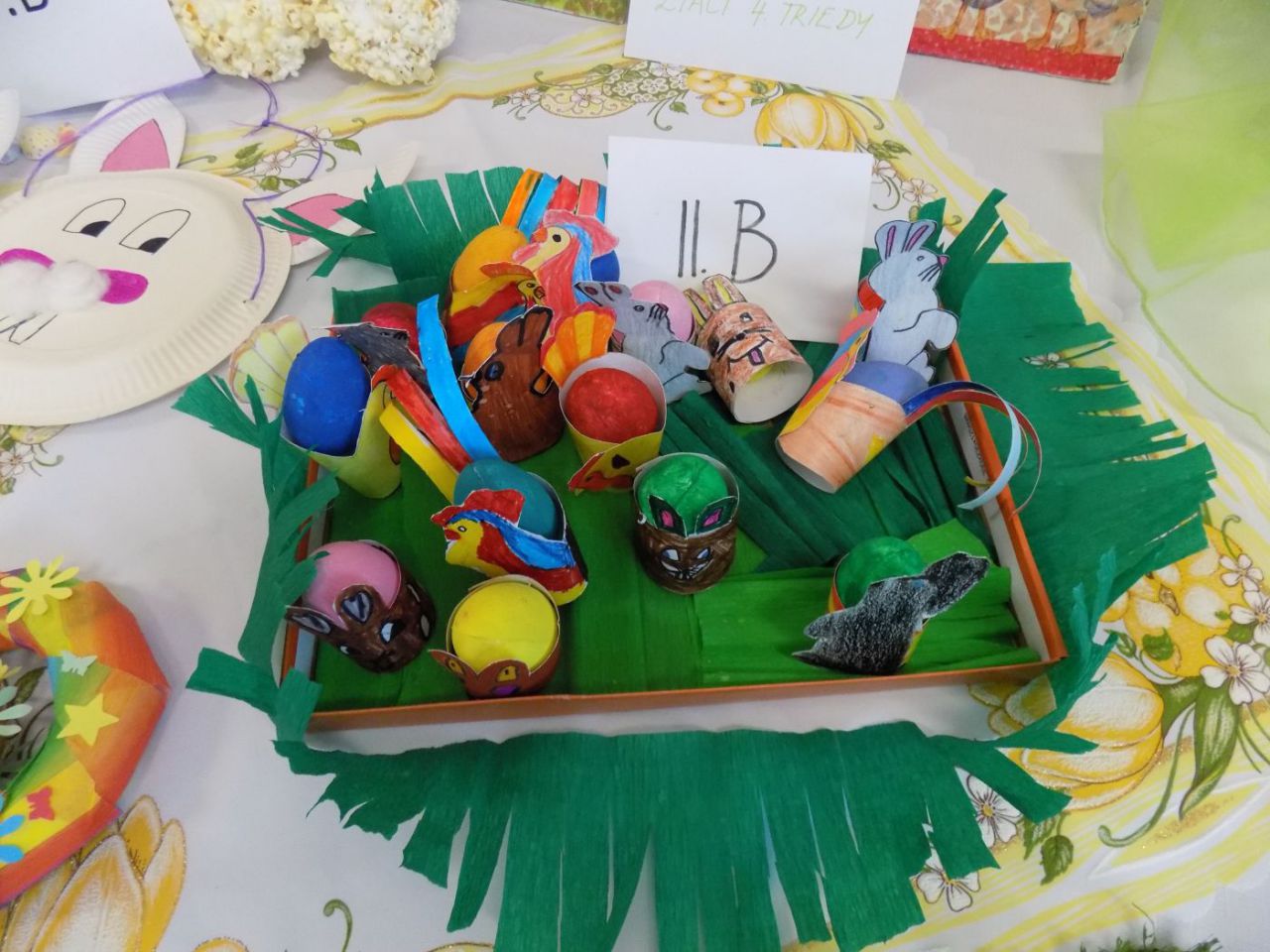 Do 6.4. nám na obecný úrad doniesli už aj hotové výrobky - tradičné kraslice, ale aj vence, z papiera, alebo látky vyrobené dekorácie. Originálne boli barančeky vyrobené z kukuričných pukancov.  Prekvapenie nás čakalo na záver - skoro 4 metrový korbáč, ktorý bol upletený z dlhých prútov, ktoré neboli nadkladané.