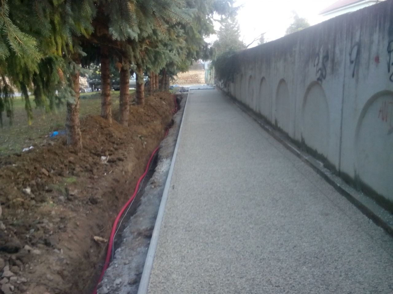 Opravili sme starý panelový chodník pri školskom areáli, ktorý už bol značne poškodený. V rámci jeho rekonštrukcie sa vymenilo aj verejné osvetlenie.