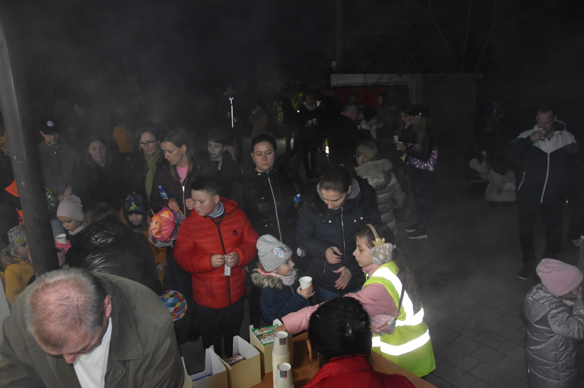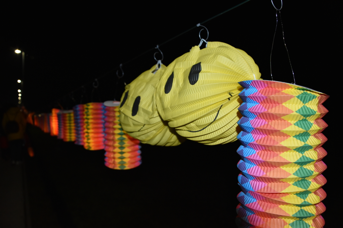 Pred EKOdvorom sme mali laná pripevnené medzi stĺpmi verejného osvetlenia,  na ktoré sme vešali rozsvietené lampióny. Odtiaľ sme sa prešli pred Kultúrny dom v Paderovciach, kde všetci dostali na  zohriatie  teplý čaj a deti aj sladkú odmenu. Počasie nám prialo a lampióny „šťastia“ mohli splniť svoju úlohu a osvetliť časť cyklotrasy.