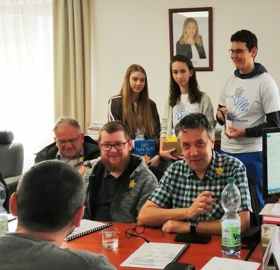 Konečne korona dovolila robiť aj také podujatia, ako je Deň narcisov. Dnes prišli k nám traja žiaci zo základnej školy s pani učiteľkou Helenou Danišovou. Robili zbierku na dobrú vec - liečba rakoviny je celosvetový problém...