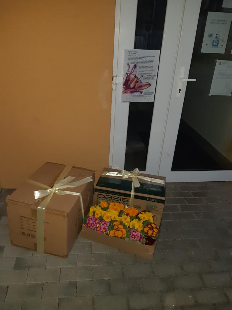 Ráno 26.3. sme pred dverami školy aj škôlky položili krabice s drobnou pozornoťou a na dvere sme prilepili poďakovanie, ktoré učiteľom patrí. Nikto to nečakal a my veríme, že sa nám príjemné prekvapenie pdarilo.