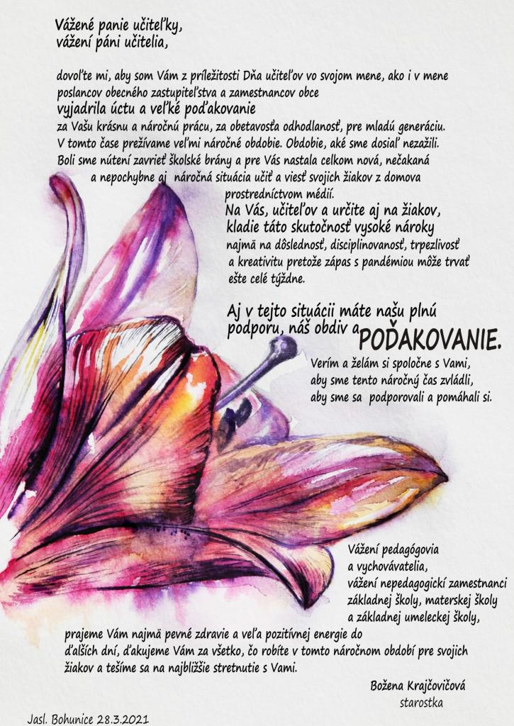 Doba nám nepraje. Nikomu. Stretnutia sú zakázané. Ako teda prejaviť poďakovanie niekomu, koho si vážime? Keď sa blížil Deň učiteľov, snažili sme sa prísť na riešenie situácie. Prišla s ním starostka.