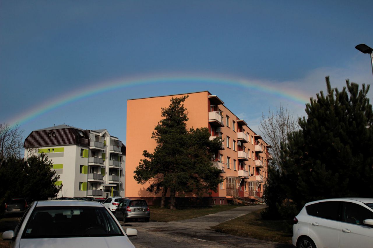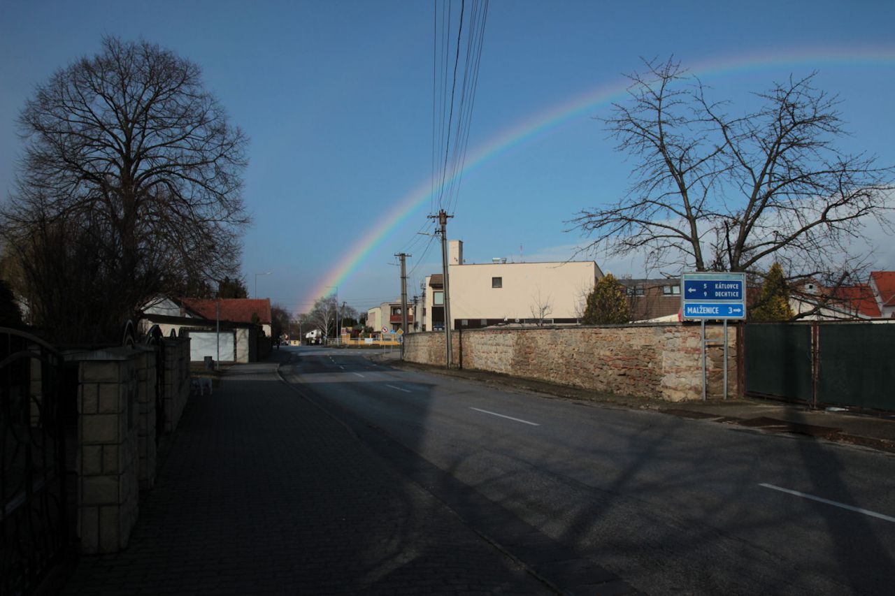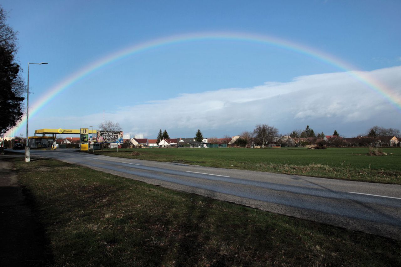 Poobede od 15,15 hod. sa na oblohe nad obcou objavila krásna dúha. Sýte farby žiarili nad Jaslovcami a veľkým oblúkom sa končila kdesi na druhej strane za Pánskymi dielmi. Nad cestou od Trnavy smerom na atómku tak vytvorila efekt krásnej vstupnej brány. Prírodné divadlo trvalo zhruba pol hodinu.
