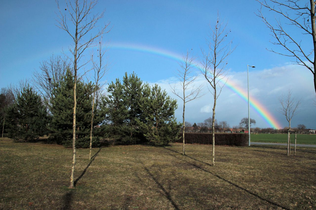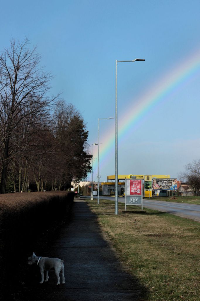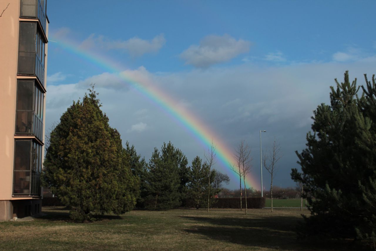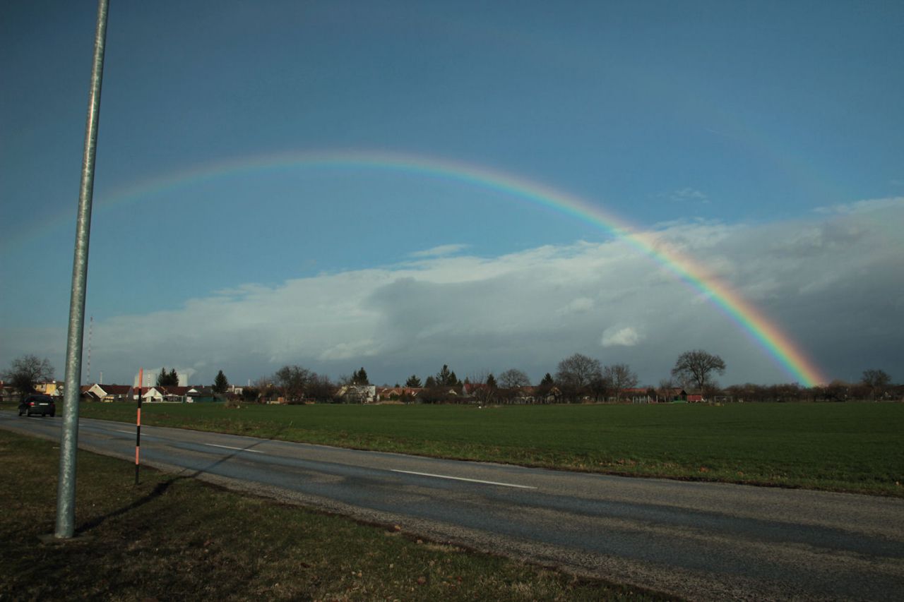 Poobede od 15,15 hod. sa na oblohe nad obcou objavila krásna dúha. Sýte farby žiarili nad Jaslovcami a veľkým oblúkom sa končila kdesi na druhej strane za Pánskymi dielmi. Nad cestou od Trnavy smerom na atómku tak vytvorila efekt krásnej vstupnej brány. Prírodné divadlo trvalo zhruba pol hodinu.