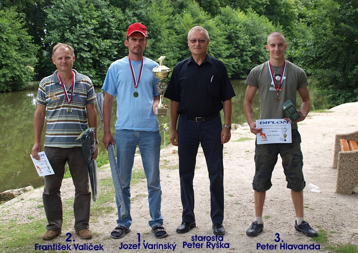 Jedným z nich bol aj Peter Jablonický. Zo svojho rybárskeho umenia nezabudol takmer nič a ulovil hneď prvú rybu pretekov. Peter mal aj najpočetnejší fan- klub. Na jeho konte skončili nakoniec traja karasy, čo stačilo na konečné 5. miesto. Najviac sa darilo Jozefovi Varinskému . Chytil 3 nádherných šupináčov, vďaka ktorým si vybojoval 1. miesto a pohár starostu. Krásneho 55 cm. veľkého kapra lysca a zároveň najväćšiu rybu dňa ulovil František Valíček ,č?o stačilo na 2. priečku. 3. miesto obsadil Peter Hlavanda . Len tesne unikli stupne víťazov Viliamovi Mrvovi. Snáď to vyjde nabudúce.