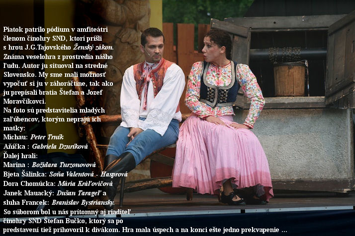 Vystúpenie folklórneho súboru Karpaty z Bratislavy bolo pastvou pre oči. Rozmanitosť krojov a tancov je pre nich vlastná. Veď reprezentujú folklór z celého Slovenska - Liptova, Terchovej, Detvy, Šariša, Zemlímu, Oravy, Horehronia, od Trenčína ...