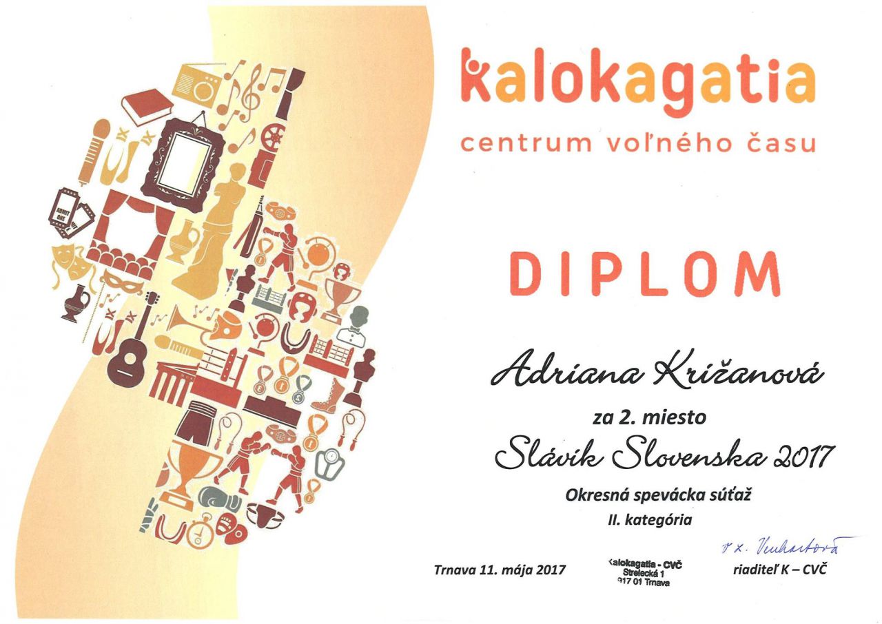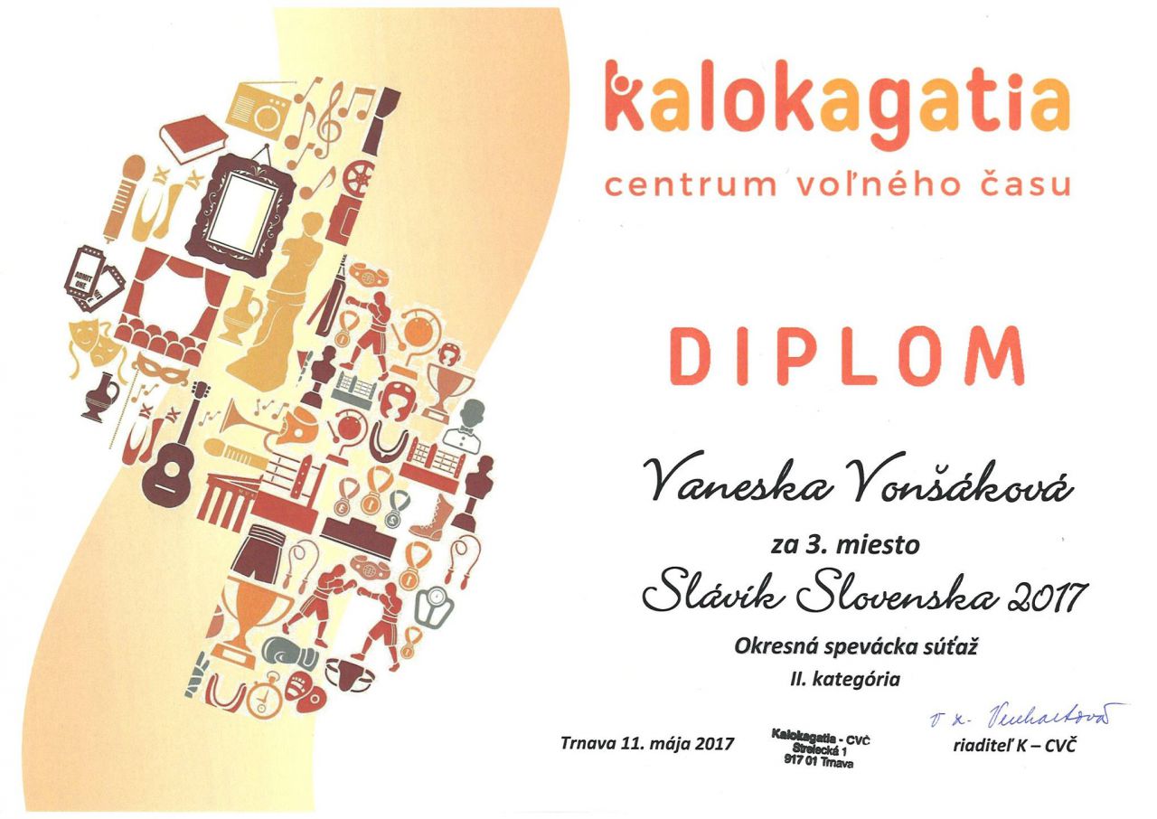 Rada by som poďakovala za krásnu reprezentáciu na súťažiach „Slávik Slovenska“ a „Zlatý kľúčik, súťaž tanečných kolektívov, športových klubov, ZŠ, ZUŠ, na ktorých sa nám podarilo vynikajúco umiestniť v oboch kategóriách a vypočuť si i pochvalu za profesionálnu prácu od poroty. Verím, že nasadenú latku budeme zvyšovať. A prezradím len, že v nasledujúcom školskom roku sa môžete tešiť na nové projekty našej – vašej ZUŠ.